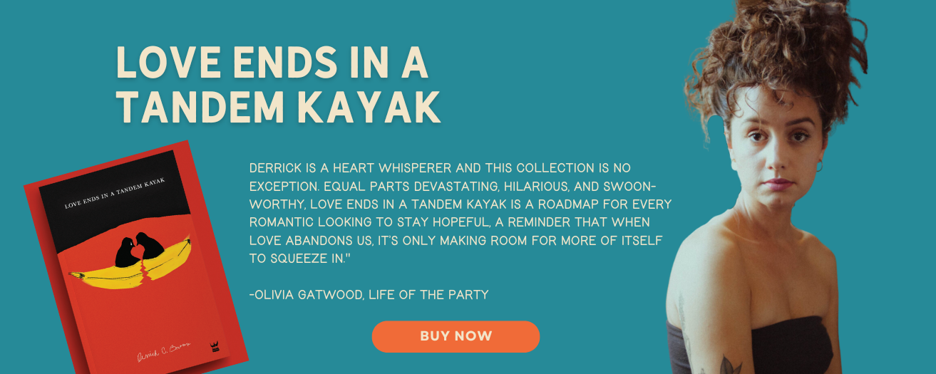 "Derrick’s poems, for me, are so generous. Generous in their wit and honesty, mesmerizing fragments of vivid memories. Like sitting next to the most fascinating drunk stranger and hearing his tales. All of them are happily part of my life now." -